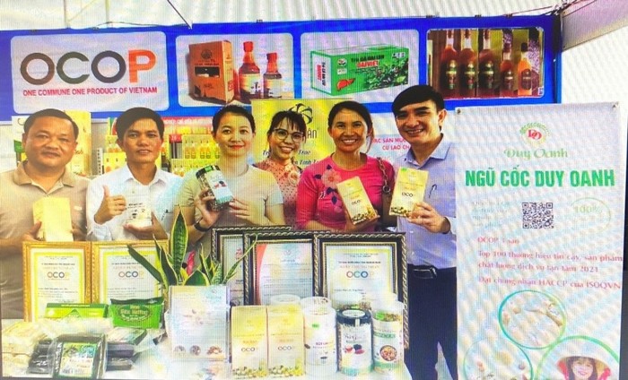 Từ cánh đồng màu mỡ ven bãi sông Thu Bồn, lòng đất nặng phù sa kết tinh thành những hạt đậu chắc mẩy giàu dinh dưỡng, gần gũi với thiên nhiên, kết hợp hài hoà với cánh đồng Sen Trà Lý thơm ngát nguồn nông sản tuyệt vời mang lại giá trị dinh dưỡng của vùng đất Duy Sơn, huyện Duy Xuyên, thương hiệu bột Ngũ cốc Duy Oanh đã ra đời. Ngũ cốc Duy Oanh gồm 14 loại hạt (đậu xanh, đậu đen, đậu đỏ, đậu ván, đậu ngự, đậu trắng, mè đen, hạt sen, đậu nành, gạo lứt đỏ, hạnh nhân, óc chó, macca, yến mạch), được tuyển chọn kỹ lưỡng từ nguồn nông sản quê hương kết hợp với phương pháp rang thủ công (lò gang, than củi) cộng với dây chuyền sản xuất hiện đại, khép kín mang đến hương vị truyền thống thơm ngon mà vẫn giữ nguyên thành phần dinh dưỡng tự nhiên. Điều đặc biệt, các loại hạt đều được chọn lọc ở những cơ sở cung cấp uy tín, kết hợp với sự đầu tư về máy móc hiện đại cũng như sự giám sát chặt chẽ về vệ sinh an toàn thực phẩm và được kết hợp với nhau bằng tỉ lệ phù hợp để tạo nên hương vị thơm ngon nhất cũng chính là bí quyết riêng tạo nên sự trải nghiệm mới lạ cho khách hàng. Ngũ cốc Duy Oanh được công nhận OCOP 3 sao năm 2021, sản phẩm công nghiệp nông thôn tiêu biểu cấp tỉnh năm 2022; Giải Khuyến khích cấp Vùng Cuộc thi “Phụ nữ khởi nghiệp – Phát huy tài nguyên bản địa” năm 2023 do TW Hội LHPN Việt Nam tổ chức.